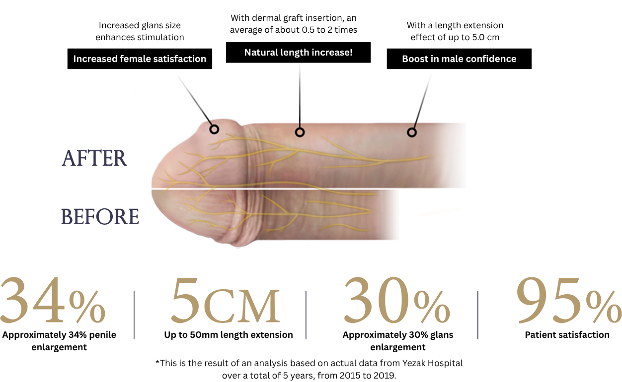 Because it produces a natural enlargement effect, Yezak performs glans enlargement using filler.
