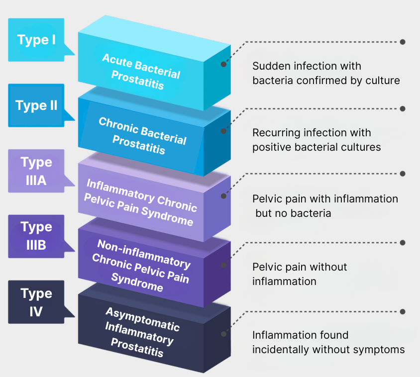 Prostatitis is a disease in which the prostate becomes inflamed and can be classified into bacterial and non-bacterial types. It occurs relatively frequently in younger men, with over 80% of patients aged between 20 and 50. It is a common condition, with about 50% of men experiencing it at least once in their lifetime.